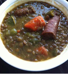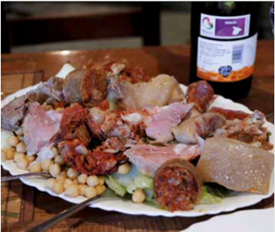 Con estos referentes es posible construir un imaginario de la cocina de esta época. En el apartado de ensaladas, verduras, sopas y potajes, cabe destacar la ensalada de capón, que además de ave cocida, lleva verduras amargas, -como escarola, achicoria y berros-, aceite de oliva, vinagre y sal; la Alboronía, la madre de todos los pistos según Néstor Luján.