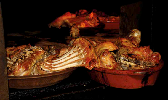 Por lo que se refiere al mesón, se trata de una institución gastronómica que emergió en las ciudades a lo largo del siglo XVI representando quizá la cara más amable de la moneda por su evolución hacia otras ofertas. Uno de los cambios más sensibles es la introducción en la Villa y Corte de los asados de carne, sobre todo cordero y lechón, en hornos de pan, preparados al estilo de Segovia y Burgos. Sin duda el más señero sería la Hostería Botín, luego Casa Botín, fundado en 1626, lo que hoy le acredita como el restaurante más antiguo del mundo, según en el Libro Guinnes de los Records.